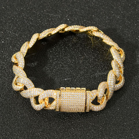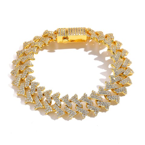 18mm Sharp Espinhos Cuba Cadeia Primavera Buckle Personalidade Cheio de Zircon Pulseira Fabricantes Vendas Diretas Hip Hop Jóias