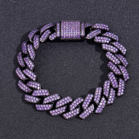 Hot Hiphop Roxo Miami Curb Cubano Link Cadeia Pulseira para Homens Rapper AAA Pavimentada Iced Out Jóias Pulseiras De Prata De Ouro